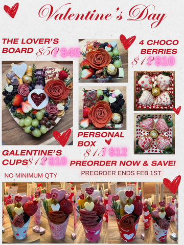 Enjoy a delicious Charcuterie board this Valentine’s Day! With over 55+ ingredients to choose from, every board is made exactly how YOU want it!