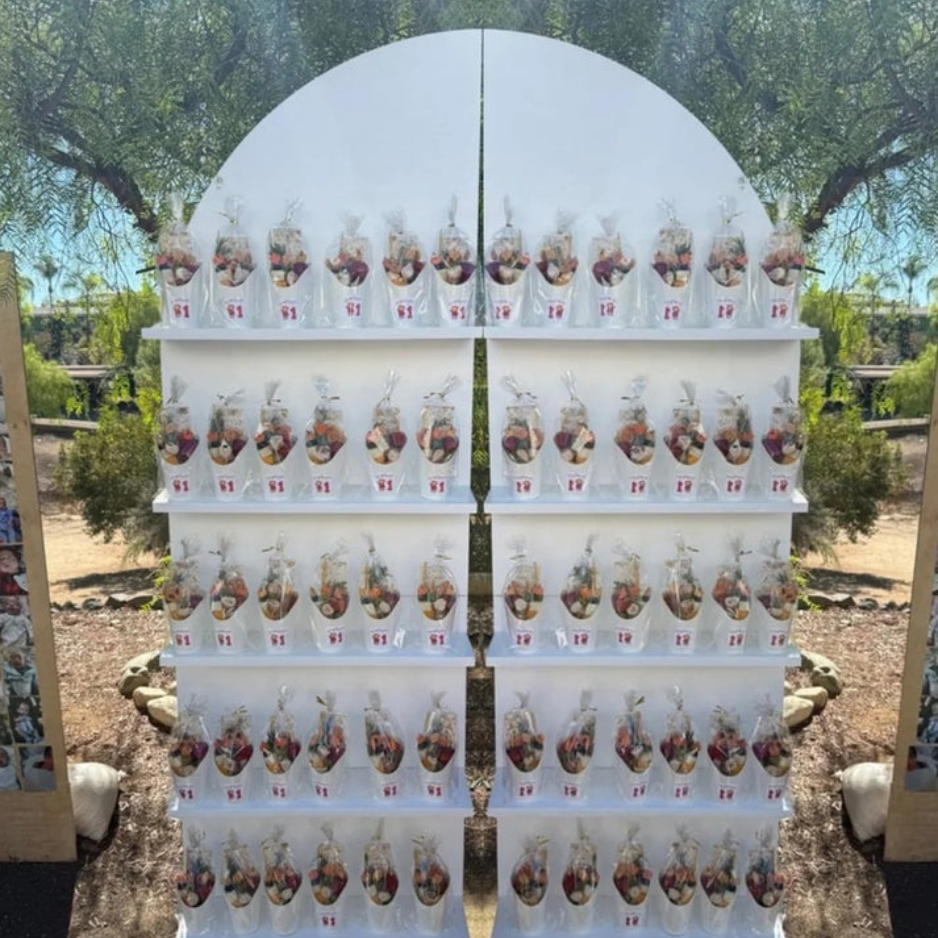 A stunning display wall filled with delicious charcuterie selections. Ideal for weddings, corporate events, and photo-worthy moments that impress every guest.