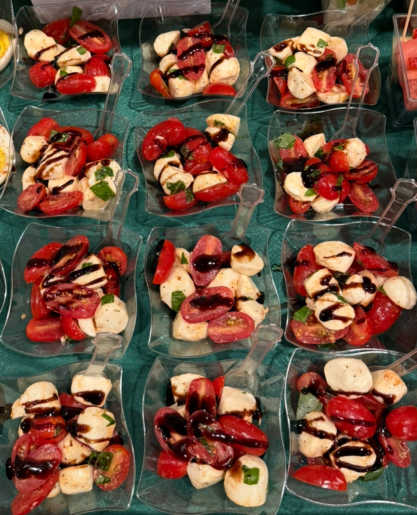 Salad. Mozzarella, tomato, basil, balsamic glaze. Small 20-30 servings Medium 35 - 45 servings Large...
