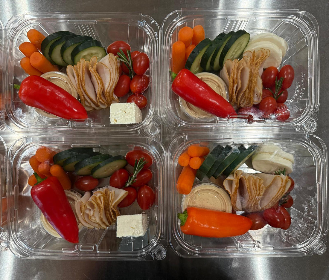 Hummus & Veggies BoxTotal Calories: Approximately 290 - Meats: Sliced turkey breast: 2 oz 60...