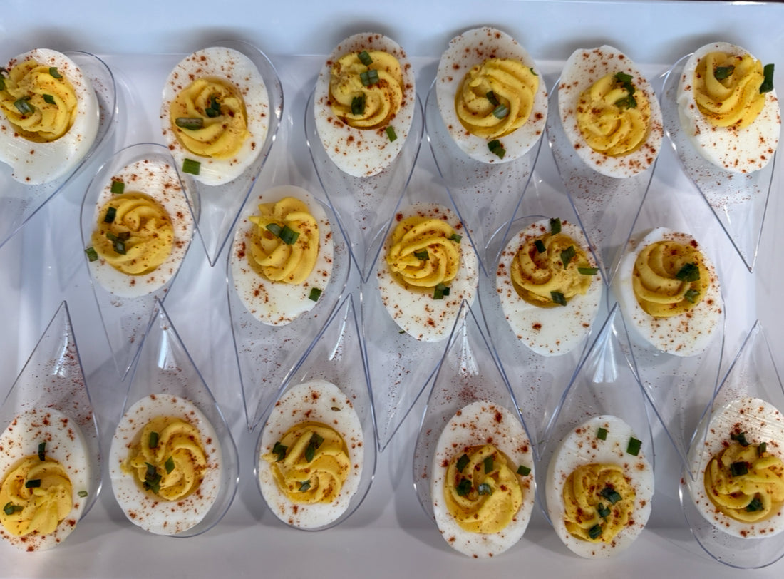 Eggs, mayonnaise, mustard, pickles, salt. Sold per dozen