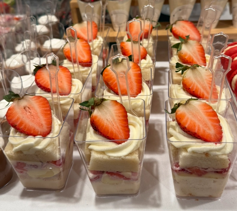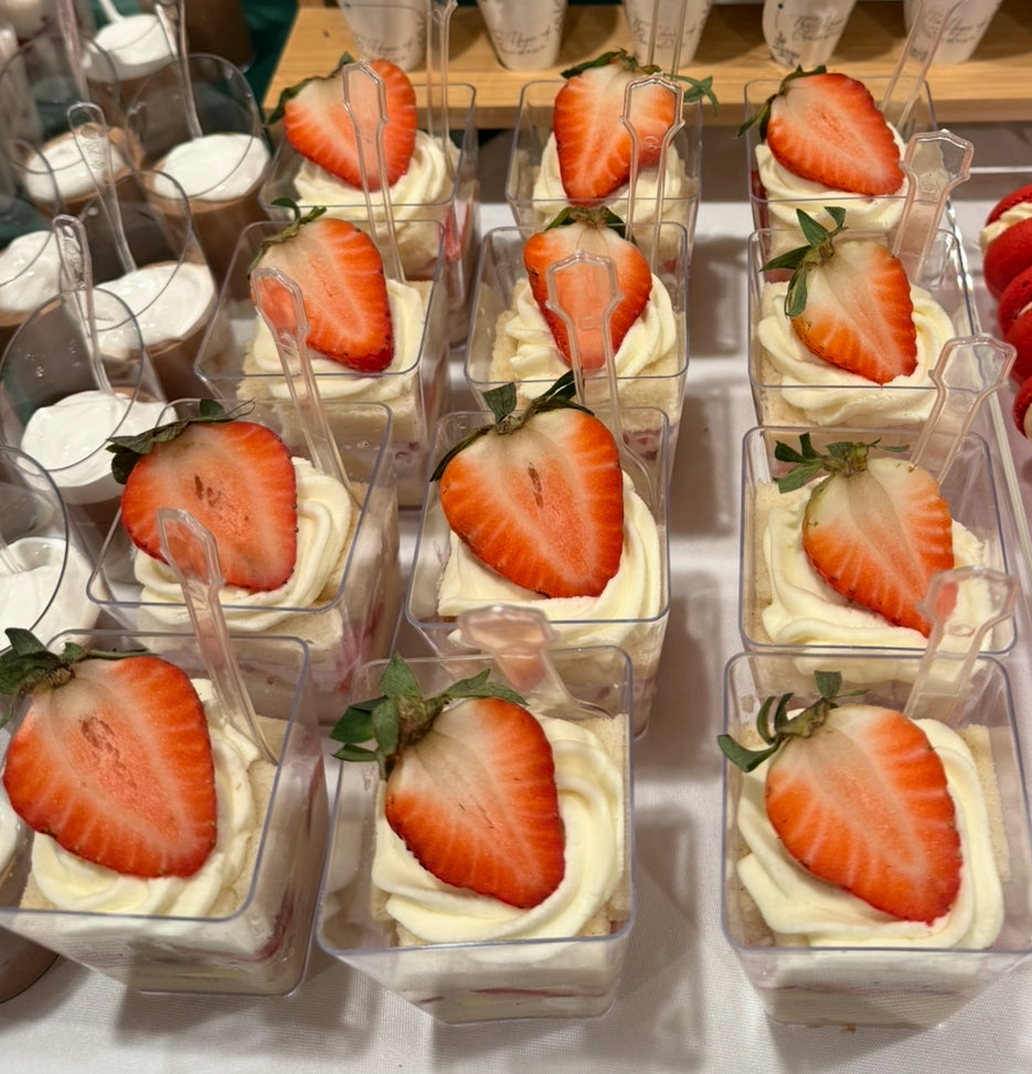 Individually portioned cups of our ultra moist tres leches cake. Strawberry or Peach. Sold by dozen.