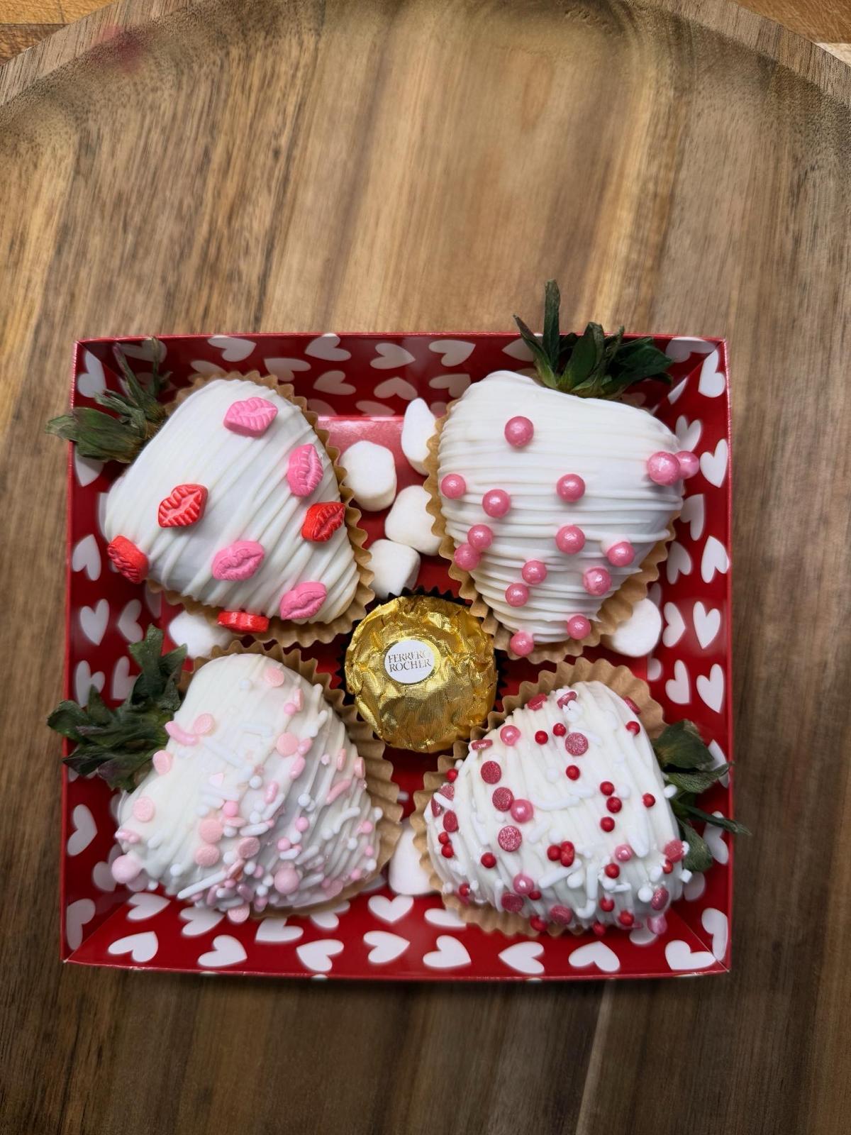 4 Chocolate Covered Strawberries with Valentines Day decor