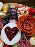 Includes: 2 Meats, 4 Cheeses, 3 Fruits&Veggies, 3 accompaniments, 2 Jams, Honey and Crackers.
